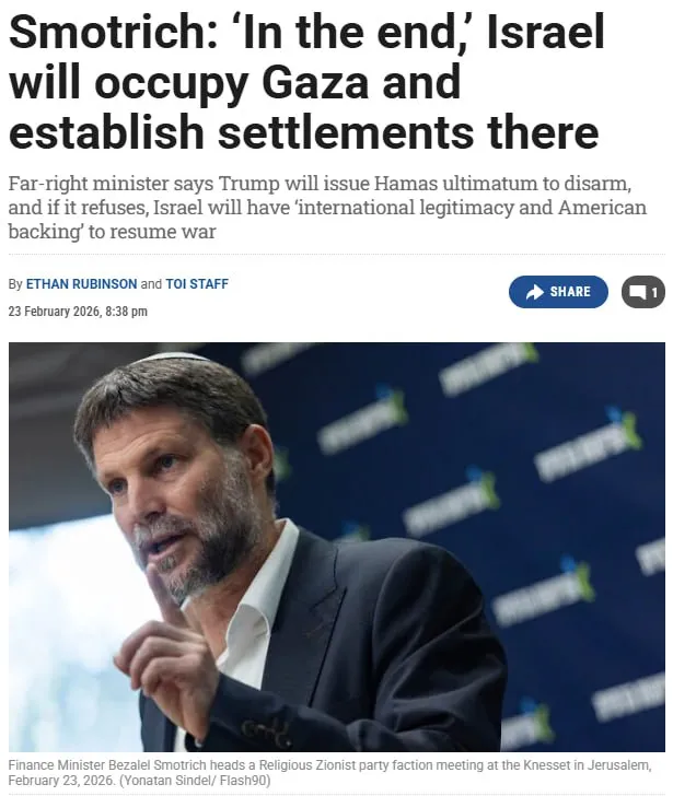 ….He [Smotrich] linked the coming political phase in Israel to the remaining term of US President Donald Trump, who began a four-year term in January 2025, calling it a “window of opportunity” to enact sea changes, including “dismantling the Palestinian Authority and disarming the West Bank.”