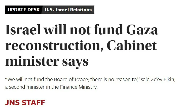 How about Ze’ev Elkin from the Finance Ministry yesterday asserting that Israel will not financially contribute to Trump’s Board of Peace? Is that disrespectful?