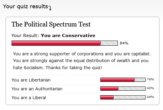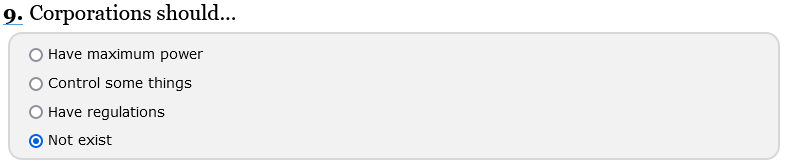 And here are the results of my ‘quiz’. It says I am a ‘strong supporter of corporations’ 😂