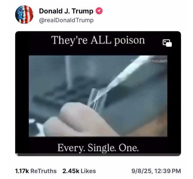 POTUS47 Trump posted this today on Truth Social, regarding vaccines. (link is here: https://www.2ndsmartestguyintheworld.com/p/bombshell-trump-posts-on-truth-social) —