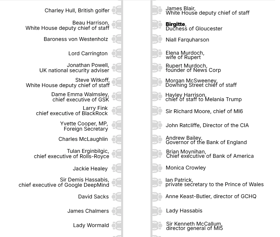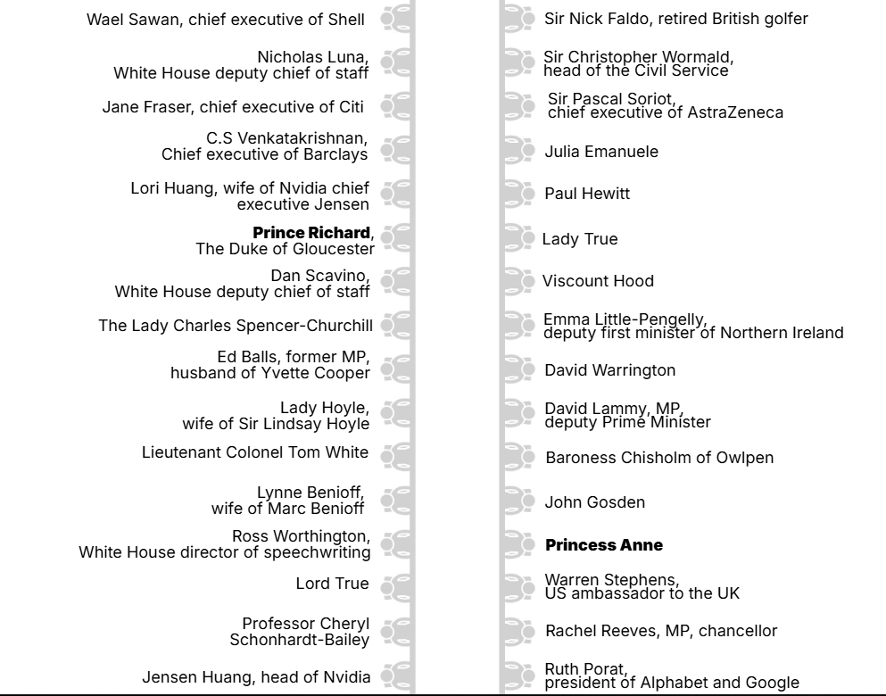 “The post dinner program featured music selections made with special care to please the President. The string orchestra performed Nessun Dorma, a James Bond medley, Ave Maria Schubert, as well as Rolling Stones’ You Can’t Always Get What You Want and Sir Elton John’s Tiny Dancer.”