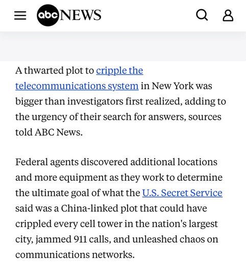 “Federal agents discovered additional locations & more equipment as they work to determine the ultimate goal of what the U.S. Secret Service said was a China-linked plot that could have crippled every cell tower in the nation’s largest city, jammed 911 calls, & unleashed chaos…”