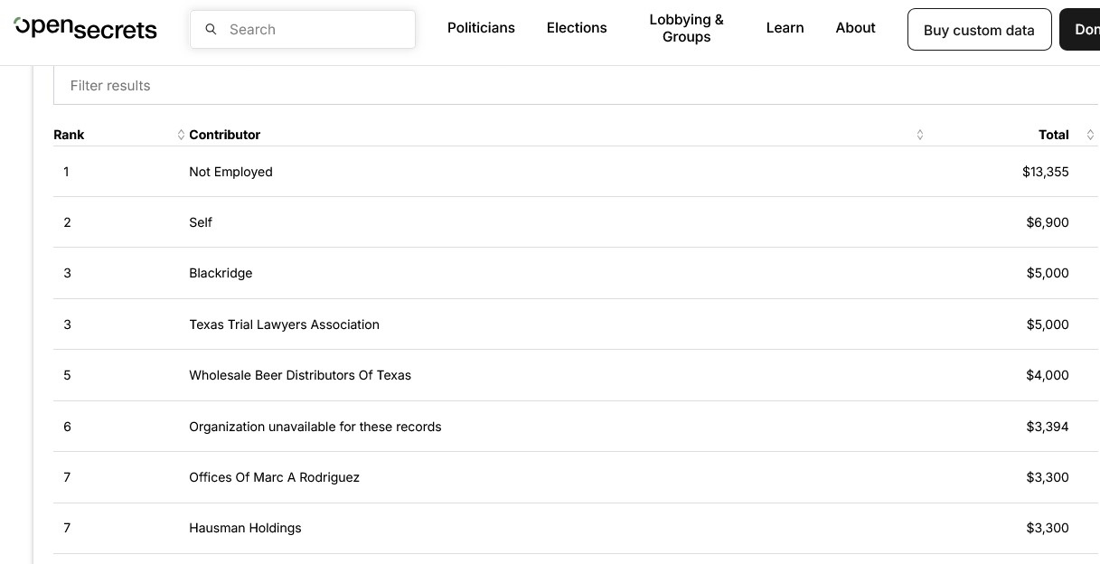 Two: Did you see the following, from https://www.opensecrets.org/officeholders/roland-gutierrez/contributors
