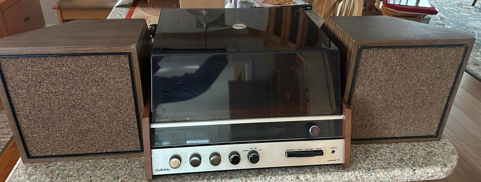 It took some searching, but I found one, his exact model and speakers too. It’s an “Electro Voice” branded unit, with a built in Garrard turntable: