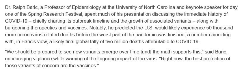 Another item linking Dr. Baric to USAMRIID: the talk that he gave at the USAMRIID annual research conference in 2023 [10]. Please see the screenshot from the article on this event, below: