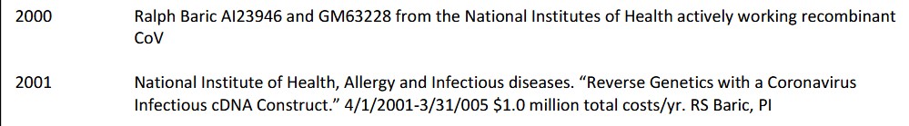 Page 16, NIH and biodefense Gain-of-Function funding for Dr. Baric:
