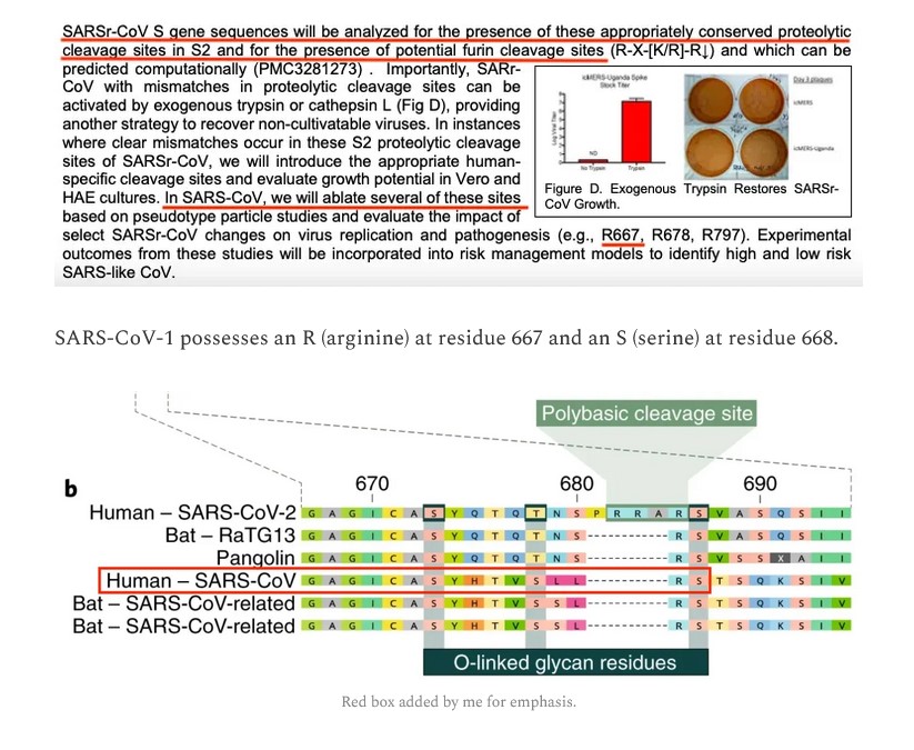 Again, from the DEFUSE Proposal document, below; this, about the furin cleavage sites in the potential SARS-CoV sequence that would be developed by Dr. Baric at his lab: