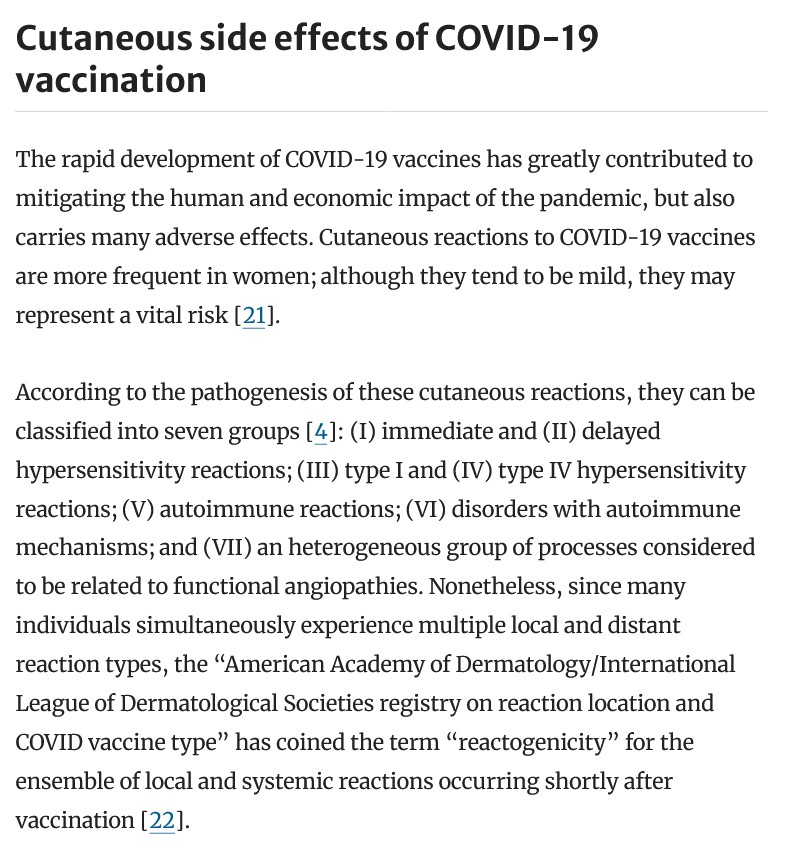 **** Grover’s disease can be caused by COVID-19 virus infection. Grover’s disease can ALSO be caused by an autoimmune reaction induced by the modRNA COVID-19 BIOWEAPON “vaccines.” The paper which describes this is here: https://doi.org/10.1007/s00292-022-01126-9, “Dermapathology of COVID-19 infection and vaccination”, Fernandez-Figueras, MT. Journal Die Pathologie. 5 October 2022. (The article is partly in German, and partly in English.) Please see the screenshots (in English) from this paper, below: the Abstract; part of the section Cutaneous Side Effects; and, from the section Practical Conclusion: