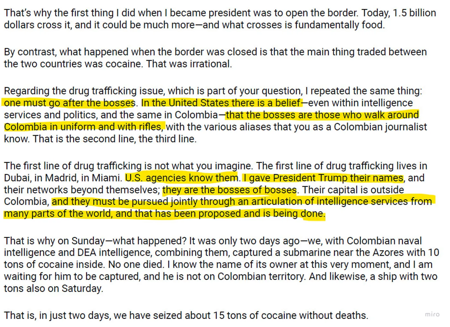 For those that may be new here, or otherwise unfamiliar with my research on both Nicolas Maduro and Colombian President Gustavo Petro, here is a 10 minute clip that provides a decent summary.[It is a clip of Colonel Douglas Macgregor on Tucker talking about the idiocy of regime change, how unsuitable Maria Corina Machado would be given the 8,000 columbian drug criminals in the hills around Caracus.]