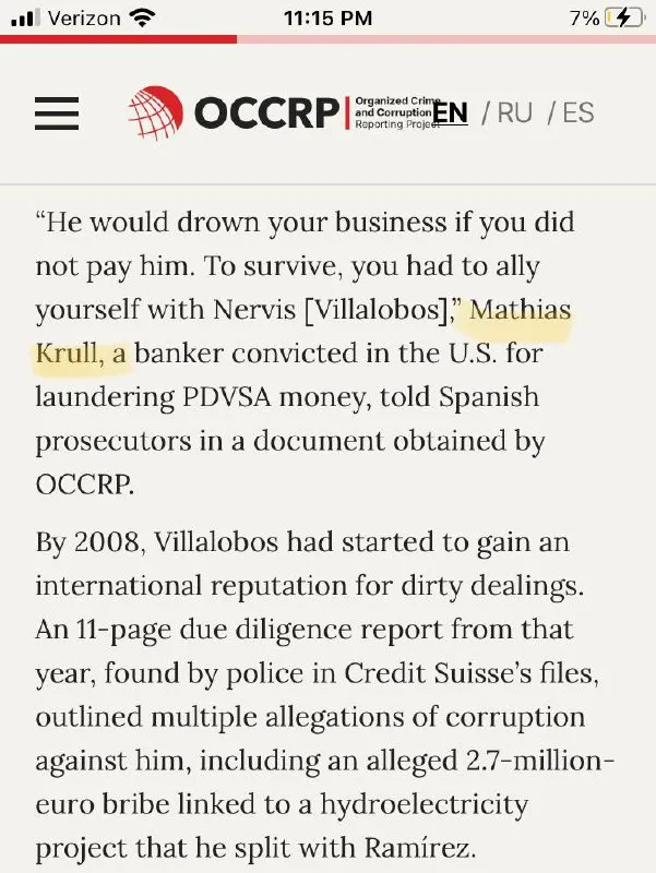 The article names former PDVSA official Nervis Villalobos, who was arrested in Spain in 2018.