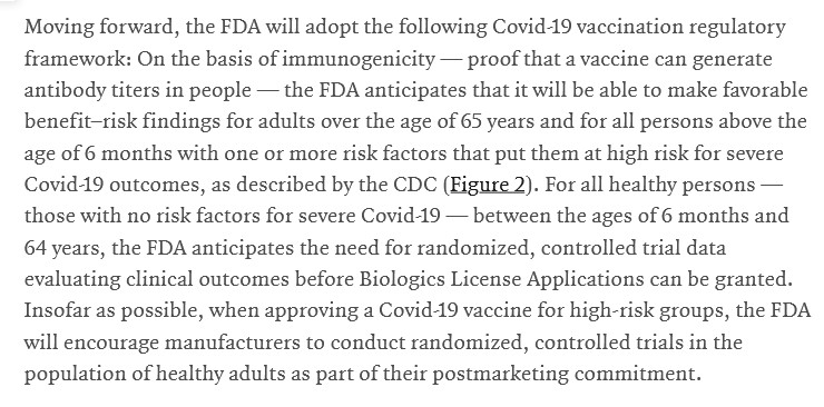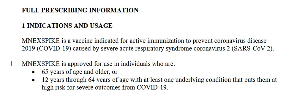 By the way, on 20 May 2025, Dr. Martin Makary (FDA Commissioner) and Dr. Vinay Prasad (Director of the FDA’s CBER division) published an “opinion piece” in the New England Journal of Medicine that purported to be their “opinions” regarding a “new approach” to COVID-19 “vaccination” in the United States. However, this was not really an “opinion piece” — it was implemented as FDA policy. This article by Dr. Prasad and Dr. Makary was published just 10 days before Dr. Kaslow sent the Approval Letter to Moderna for mRNA-1283 (mNEXSPIKE.) Did Dr. Prasad and Dr. Makary know in advance that Dr. Kaslow was going to issue this Approval Letter? Did HHS Secretary Kennedy, Jr., know? The “opinion piece” is here: https://doi.org/10.1056/NEJMsb2506929. “An Evidence-Based Approach to COVID-19 Vaccination.” Vinay Prasad, MD, MPH, and Martin Makary, MD, MPH. 20 May 2025. Below are two screenshots from this article: from the text; and, the Figure 2, which lists the “groups at severe risk from COVID-19.” The persons who would fall under one or more of the categories listed in Figure 2, even if these persons are under age 65, would “qualify” for “vaccination” with mNEXSPIKE: