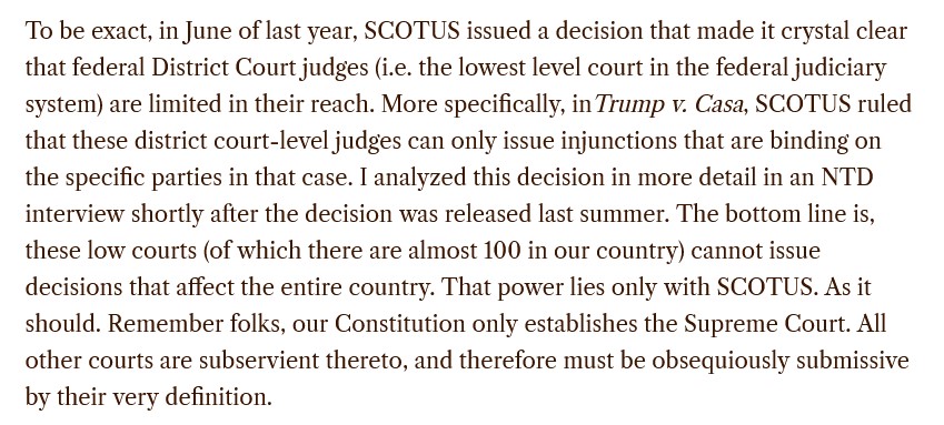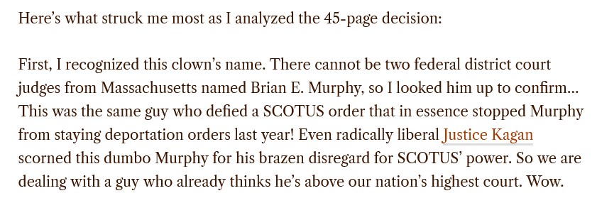 Yours Truly went to the article (referred to in the post by Dr. Rose), written by an experienced practicing attorney, regarding the Murphy “ruling.” The attorney is Bobbie Anne Flower Cox, Esq. Her article is here: https://brownstone.org/articles/when-judges-go-rogue/, 23 March 2026. Please see the screenshots from this article, below: