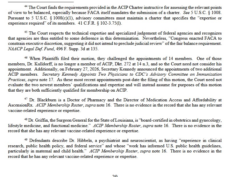 Dr. Jessica Rose, PhD, discussed the ruling here: https://jessicar.substack.com/p/more-on-the-judgy-mcjudgefaceacip-situation, “More on Judge Brian E Murphy/ACIP situation”, 21 March 2026. Please see the screenshots, below, from this article: