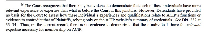 It appears that the (then)-members of the ACIP group were supposed to “present evidence” to him that they ARE qualified to sit on the committee? And, if the JUDGE deems their “level of expertise” is “lacking”, that the JUDGE can dismiss such members from the committee? Were the credentials of, for example, (then)-ACIP member Dr. Robert Malone not “good enough” for Judge Murphy? — After all, Dr. Malone discovered how mRNA can be “packaged” into a lipid nanoparticle. And why does it appear that Judge Murphy has a “particular axe to grind” regarding (then)-ACIP member Dr. Retsef Levi?