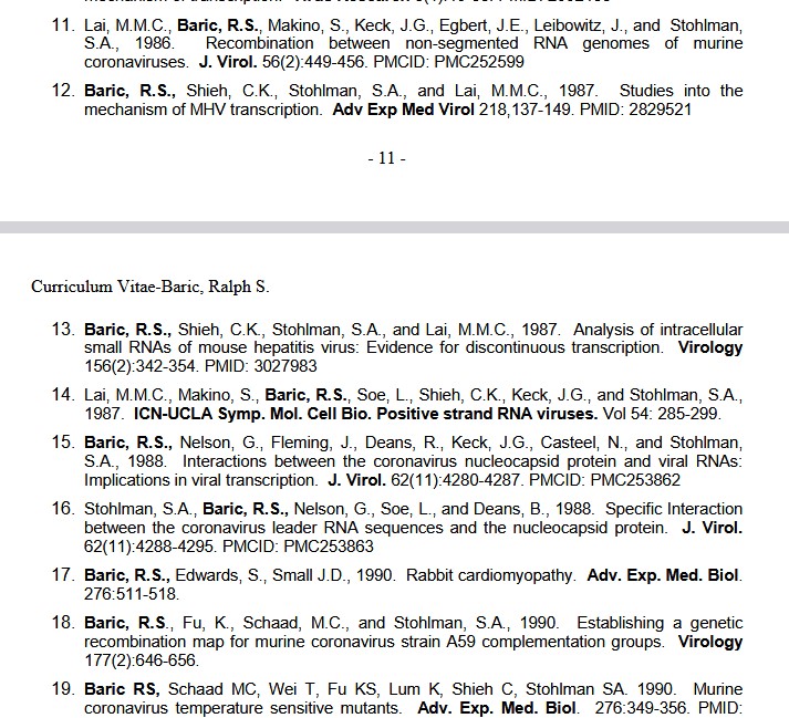 [1]: “Curriculum Vitae Ralph S. Baric.” https://sph.unc.edu/wp-content/uploads/sites/112/2016/09/CV_Ralph_Baric.pdf.