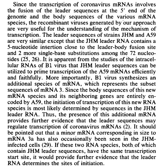 Note the mentions of “mRNAs”, “coronavirus”, “transcription”, and “recombinant viruses.”