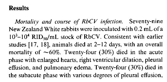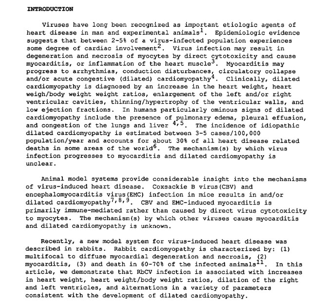 [5]: “An experimental model for dilated cardiomyopathy after rabbit coronavirus infection.” L K Alexander, J D Small, S Edwards, R S Baric. https://doi.org/10.1093/infdis/166.5.978. November 1992.