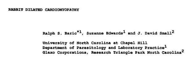 [4]: “Rabbit cardiomyopathy.” Baric, R.S., Edwards, S., Small, J.D. https://link.springer.com/chapter/10.1007/978-1-4684-5823-7_71#chapter-info. 1990.