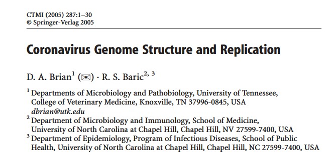 [6]: “Coronavirus Genome Structure and Replication.” D.A. Brian, R.S. Baric. https://doi.org/10.1007/3-540-26765-4_1. 25 October 2005.