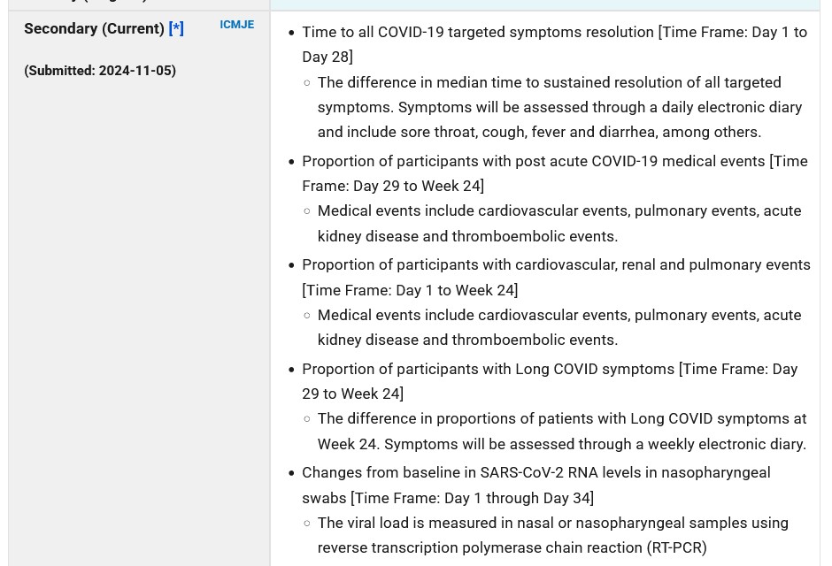 In addition, in the information about NCT06679140, the “placebo tablet” that will be used is NOT described at all. Is the “placebo tablet” going to be Paxlovid? Is the “placebo tablet” going to be a completely drug-free “empty” tablet?